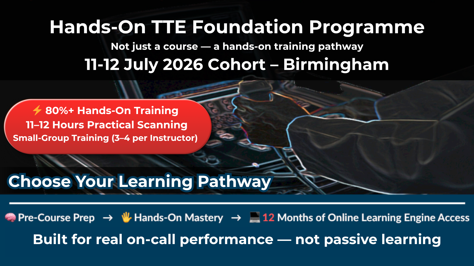Delivered online and hands-on by certified cardiac imaging specialists with real-world NHS experience